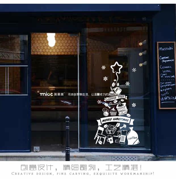 Cafe Coffee Shop Creative Christmas tree glass glass door stickers window stickers affixed beans snowflake decoration