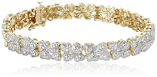 -. Title : 18k Yellow Gold over Sterling Silver Diamond Hearts Bracelet (1/10cttw, I-J Color, I2-I3 Clarity), 7.25"