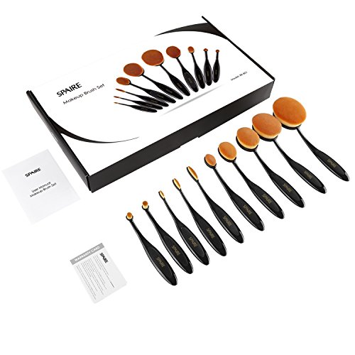 Spaire Makeup Brushes 10 Pieces Oval Makeup Brush Set with Soft Fiber Hairy Toothbrush Shaped Design for Both Wet and Dry Powder