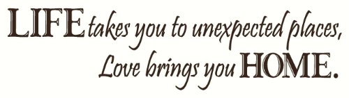 Wall Décor Plus More WDPM039 Life Takes Us Love Brings Us Home Wall Vinyl Sticker Quote, 6 x 24-Inch, Chocolate Brown