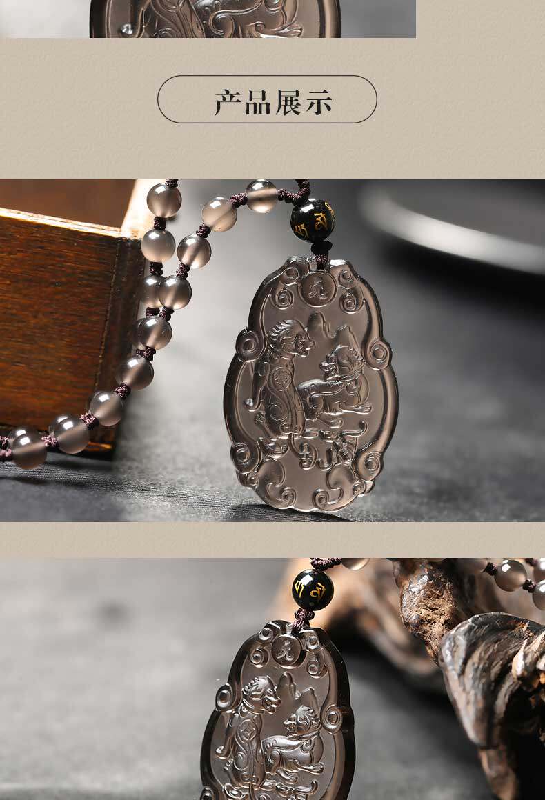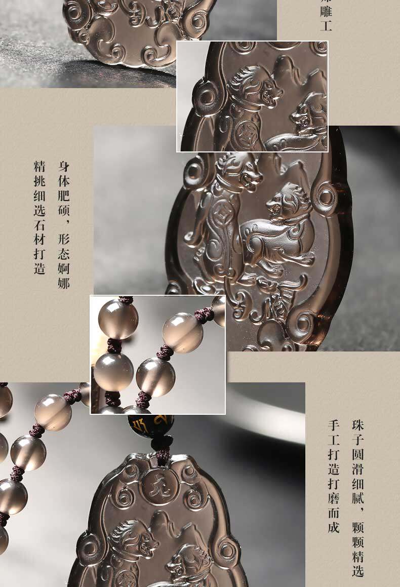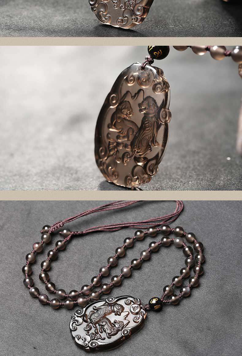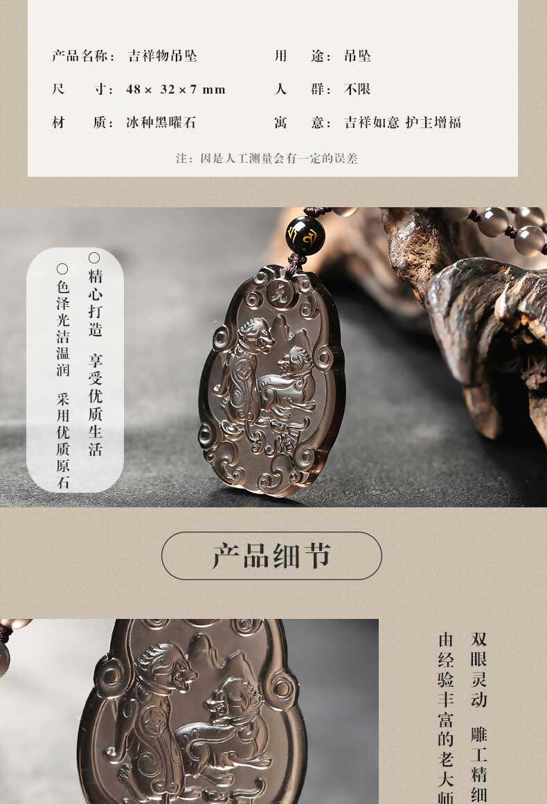 开光财福双犬属狗吊坠本命年吉祥物财福双犬冰种黑曜石项链