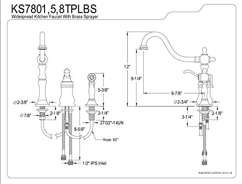 Kingston Brass KS7805TPLBS Templeton Widespread Kitchen Faucet with Brass Sprayer, Oil Rubbed Bronze