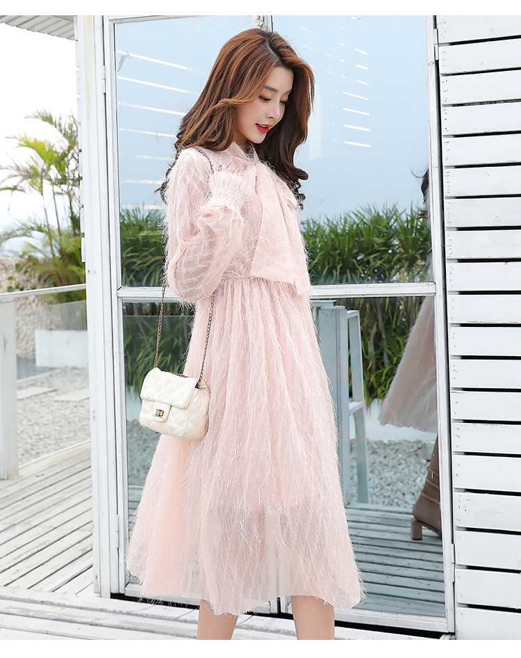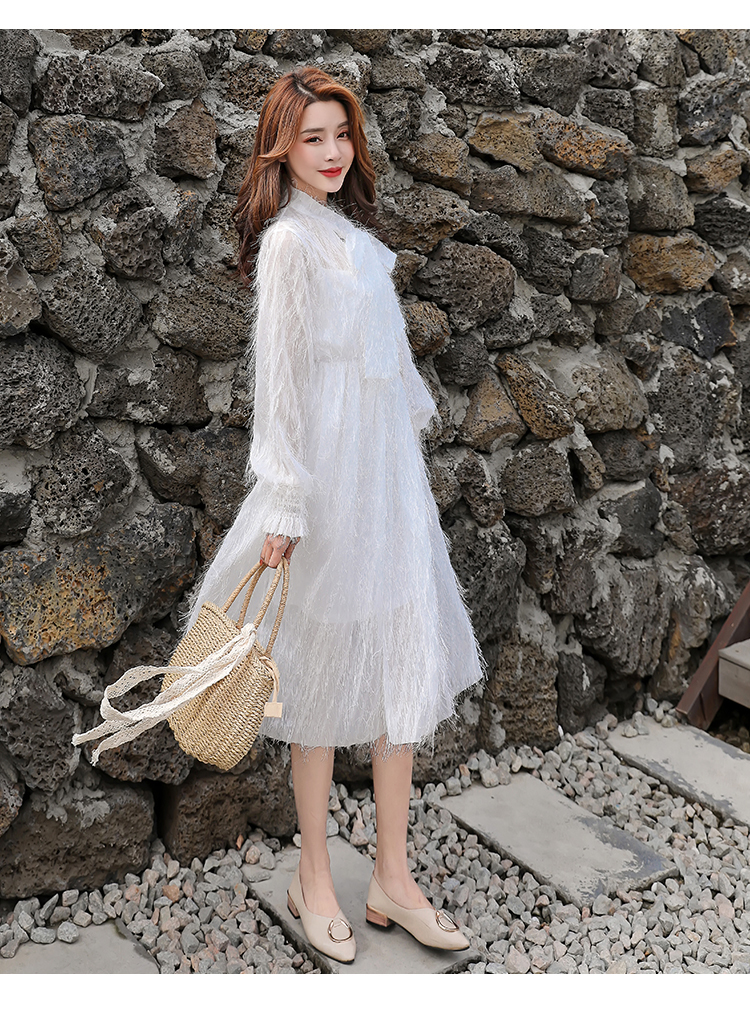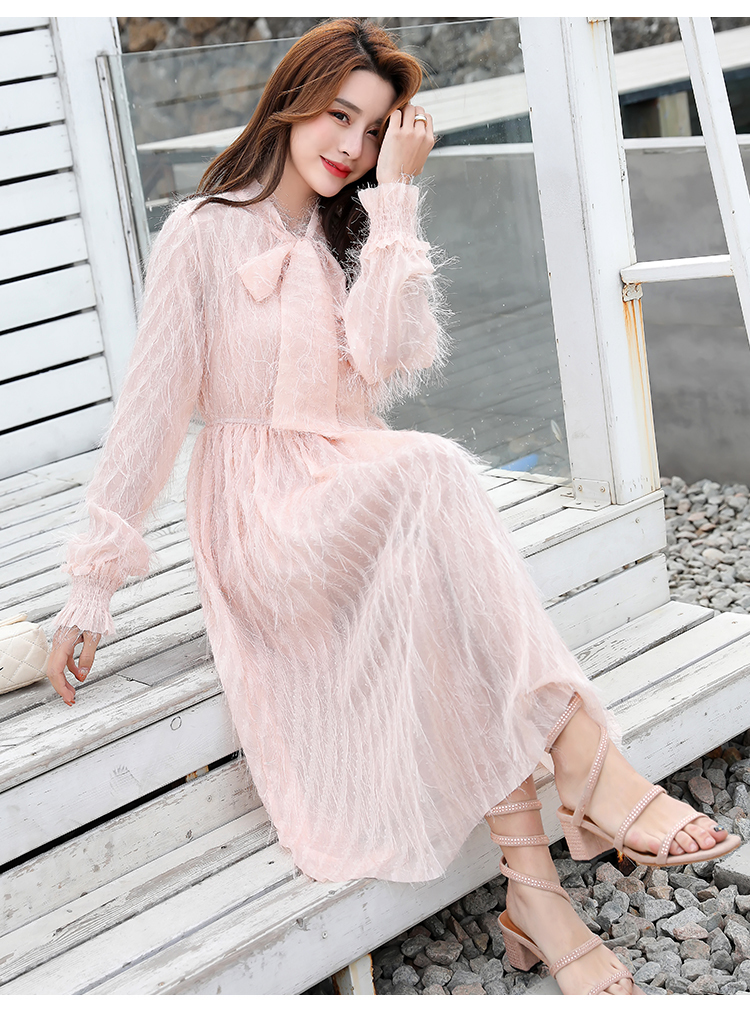ふわふわで軽やかなフェザーを全体にあしらった、レトロガーリーワンピースです♪