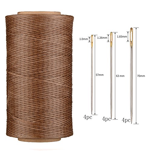 AntKits 284 yards 150D 0.8mm Flat Leather Waxed Thread Cord and 12 pcs Stitching Needles with Big Pinhole for Leather Factory or Leathercraft DIY, Brown