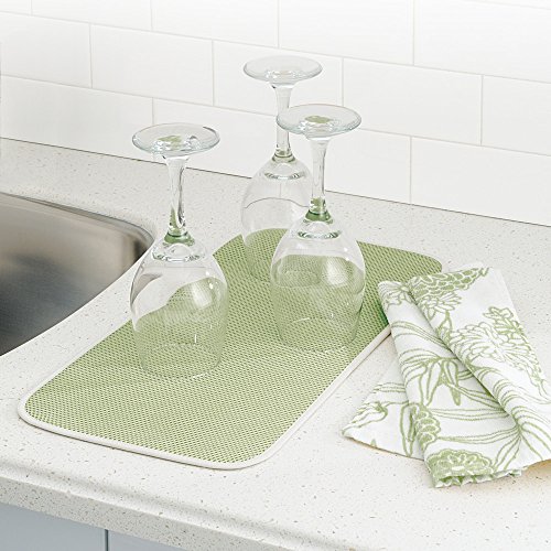 mDesign Absorbent Kitchen Countertop Dish Drying Mat - Pack of 4, Mini, Sage Green/Ivory