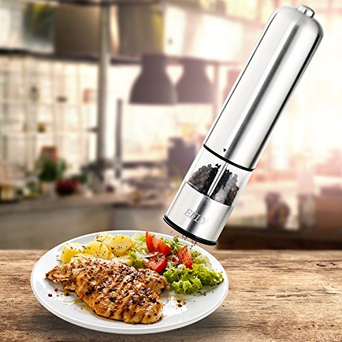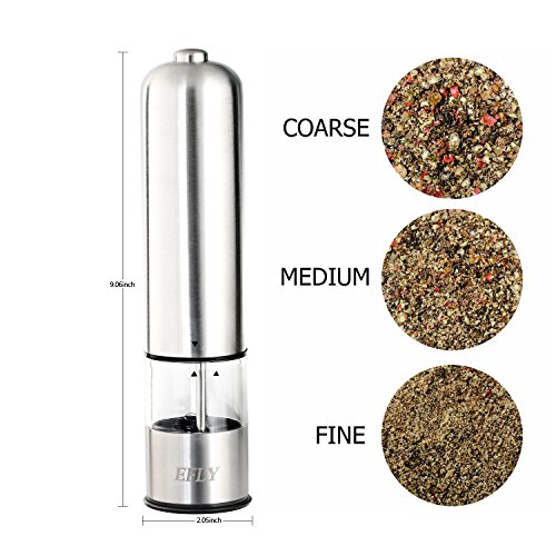 EFLY Electric Salt and Pepper Grinder Automatic Stainless Steel Ceramic Coarse Battery Power Round Head Salt/Pepper Mill