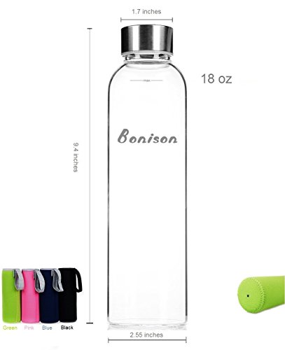 Trendy and High-Quality -- Simplistic, smooth design of BONISON Borosilicate Glass Water Bottle is perfectly design for your everyday use. Stay hydrate with fresh, pure taste of water and favorite drink in BONISON sleeved glass bottle.