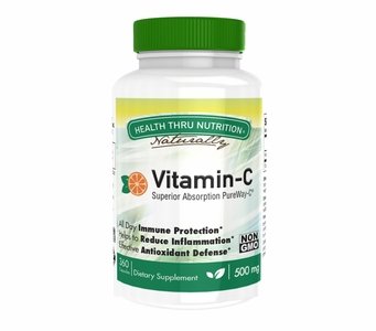-. Binding : Health and Beauty -. Brand : Health Thru Nutrition -. Feature : All-natural product / GMO-free and allergen-free / More rapidly taken-up and absorbed by cells than other forms of vitamin C / Potent antioxidant and significant free radical scavenging capabilities / Greater reduction of plasma levels of C-reactive protein and Oxidized LDL / More rapidly protected immune system and promote wound healing. -. IsAdultProduct : 0 -. Label : Health Thru Nutrition -. LegalDisclaimer : These statements have not been evaluated by the Food & Drug Administration. These products are not intended to diagnose, treat, cure or prevent any disease. -. Manufacturer : Health Thru Nutrition -. Model : HTN0241 -. MPN : 10304-360 -. PackageQuantity : 1 -. PartNumber : 10304-360 -. ProductGroup : Health and Beauty -. ProductTypeName : HEALTH_PERSONAL_CARE -. Publisher : Health Thru Nutrition -. Studio : Health Thru Nutrition -. Title : PureWay-C® 500mg Vitamin C (360 Capsules)