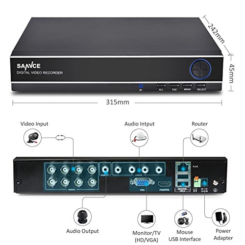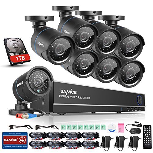 -. Title : SANNCE 8-Channel HD 1080N Home Security System DVR and (8) 720P Indoor/Outdoor Weatherproof Surveillance Cameras with IR Night Vision LEDs, Remote Access - 1TB Surveillance Hard Disk Drive