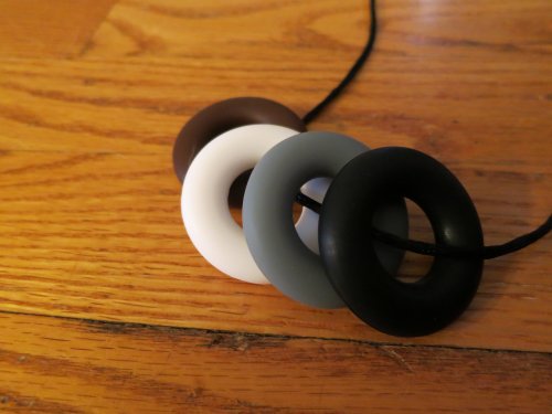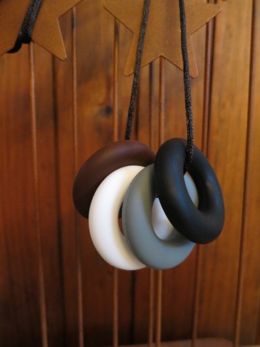 Bitey Beads Donuts-on-a-String Pendant Silicone Teething Nursing Necklace (Neutrals)
