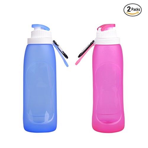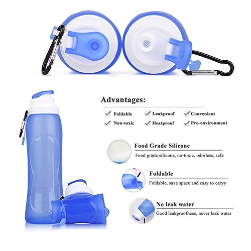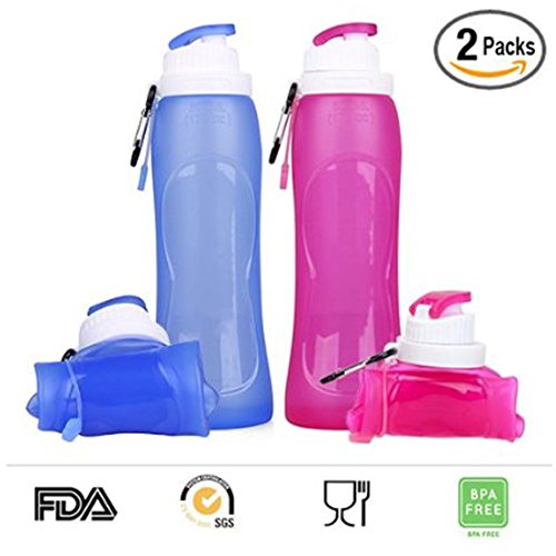 Silicone Water Bottle Hiwin BPA Free 17 Oz Foldable Leak Proof Silicon Sports Water Bottle Camping Hiking Cycling Yoga Crossfit Air Travel 2 Packs of Set