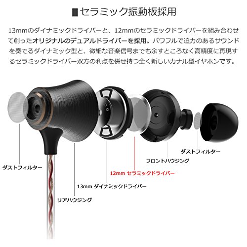 -. Feature : 【Amazon.co.jp限定商品! セラミックドライバーを採用】 独自に開発したセラミックドライバーと、力強い中低域を奏でるダイナミックドライバーを組み合わせたデュアルドライバー搭載のハイレゾ対応イヤホンです。 / 【自然な音の広がりと臨場感を実現】パワフルで迫力のあるサウンドを奏でるダイナミックドライバーと、微細な音楽信号までも余すところなく高精度に再現するセラミックドライバー双方の利点を併せ持ちます。低音域から高音域までバランス良く鳴らすので、原音が持つ臨場感を充分にお愉しみいただけます。 / 【OFCケーブルを使用】イヤホンのコードにはOFC(無酸素銅)を使用。不純物を除去した99.99%以上の高純度銅を使用したケーブルなので、解像度が高く切れのよい音質を実現します。手触りが良く絡みにくいのも特長です。 / 【通話もできるマイク付き】音楽を楽しむだけでなく、通話もできるマイク付きモデルです。ハンズフリーでの通話が可能です。 / 【付属品】イヤーキャップ(M/L)、が添付されています。製品は保証期間1年の弊社保証書付き。破損しないよう、厳重梱包し発送致します。