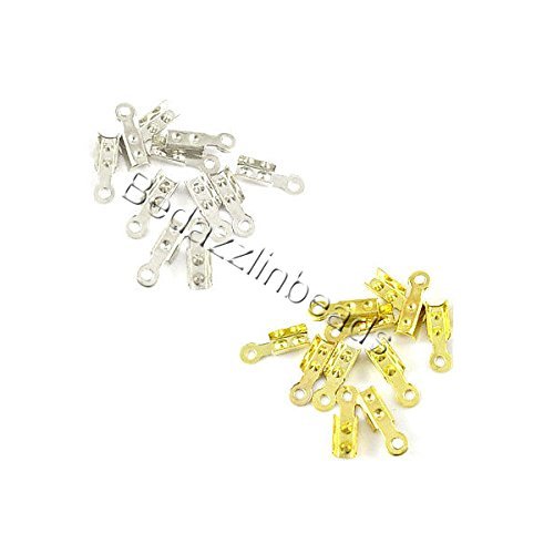 100 Fold Over Cord Crimp Bead End Tip Findings With Loop For Jewelry Cording (Gold Plated)