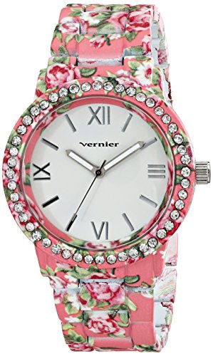 Vernier Women's VNR11168O Pink Floral and Rhinestone Watch