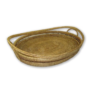 - Artifacts Trading Company rattan oval tray with high handles 20"x15"x3"