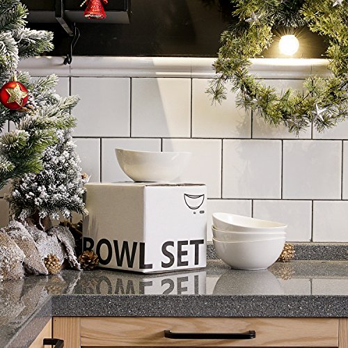 Sweese 1104 Porcelain Bowls - Set of 4 - 28 Ounce for Cereal, Salad and Desserts, White