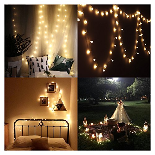 -. Feature : DIMMABLE 8 MODES: String lights controller have 8 working modes - Combination, In Waves, Sequential, Slo-Glo, Chasing/Flash, Slow Fade, Twinkle/Flash, Steady on / LOW POWER CONSUMPTION& SAFETY: 110V Super-bright but running with low temperature, really safe DC 29V low voltage transformer (plug) for use in your home / WATER-RESISTANT: IP44 Waterproof level, this string lights suitable for Indoor & Outdoor;Number of LED bulbs: 100 pieces;Length: 10m(33ft) + 3m(9ft) wire without led bulb / ROMANTIC LIGHTING EFFECTS:ideal for Garden, living room, dining room, bedroom, wedding, party, Valentine's day, Halloween, Christmas, etc / 90 days money back guarantee Send the String lights back to us if you really do not like it for some reason, stress free!