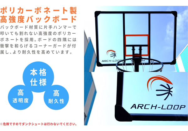 ●バックボードの素材にはポリカーボネートを採用し、耐久性があるため長期間お使いいただけます。