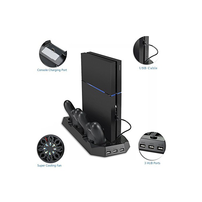 TechRise PS4 스탠드 2대 충전 냉각 팬 부착 USB허브3포토 PS4전용