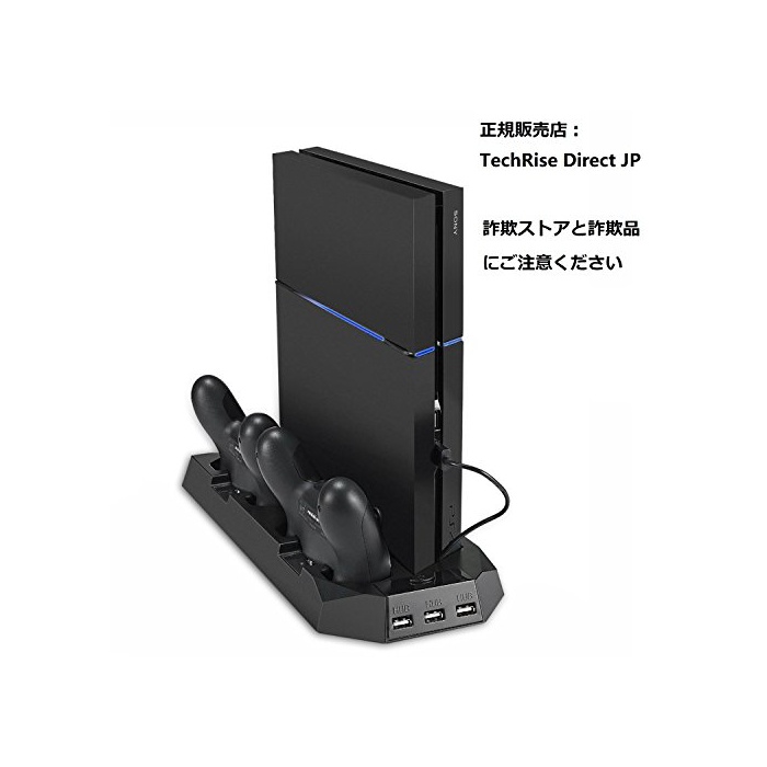 원본상품명: TechRise PS4 スタンド 2台充電 冷却ファン付き USBハブ3ポト PS4用