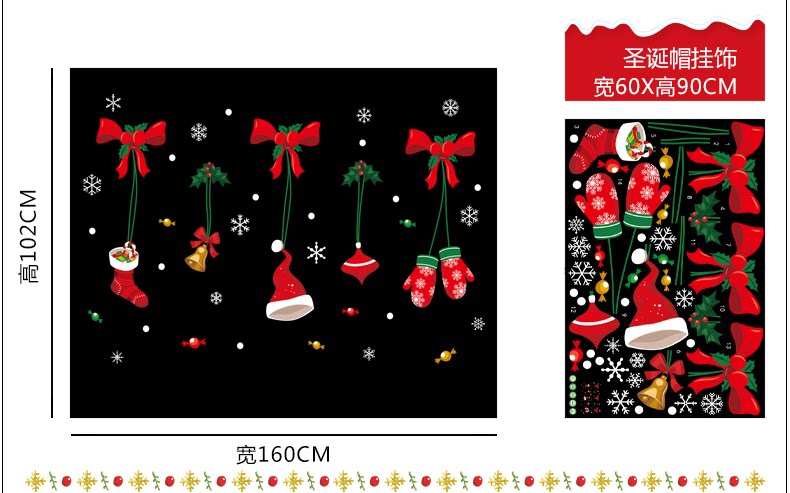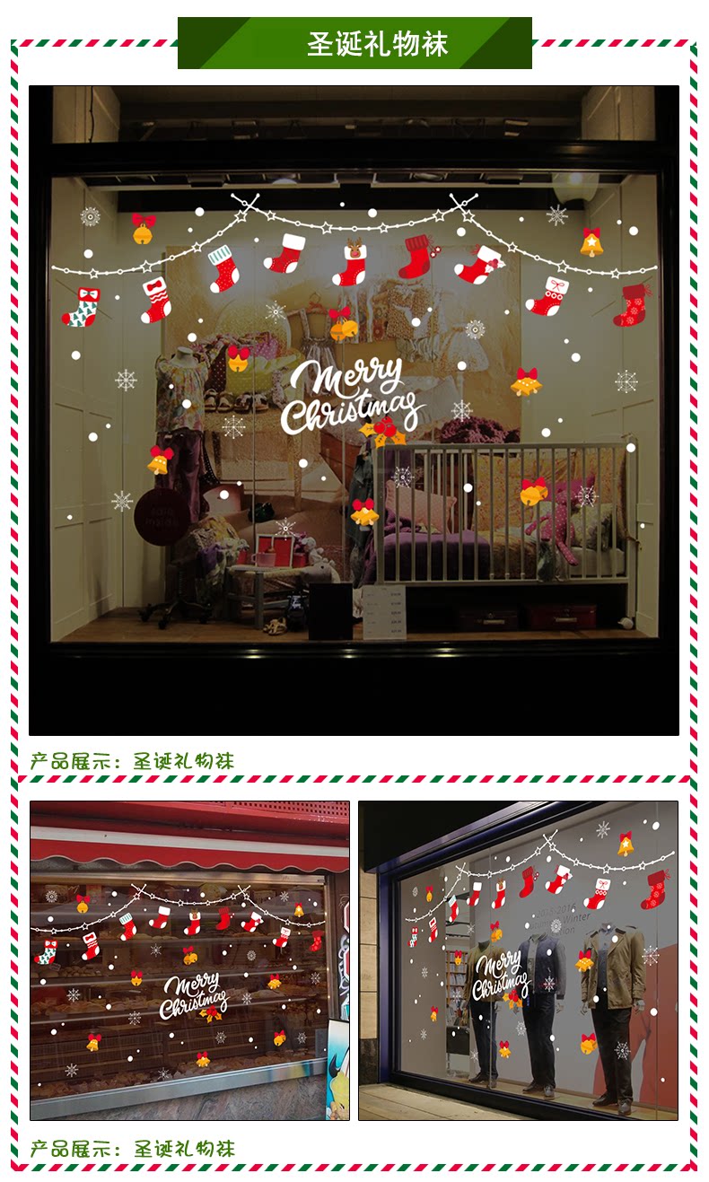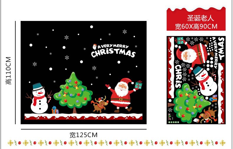 圣诞节玻璃门贴纸商场店铺橱窗装饰品墙贴雪花窗花布置奶茶店贴画