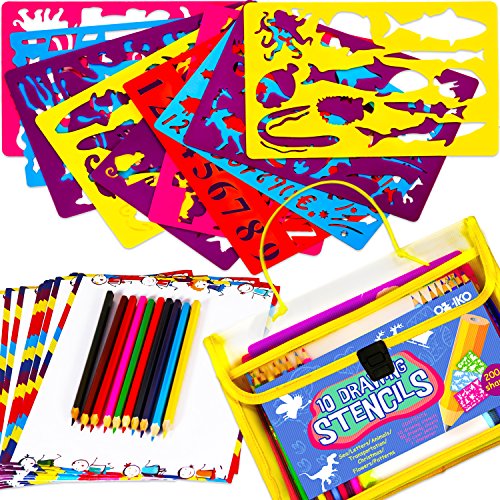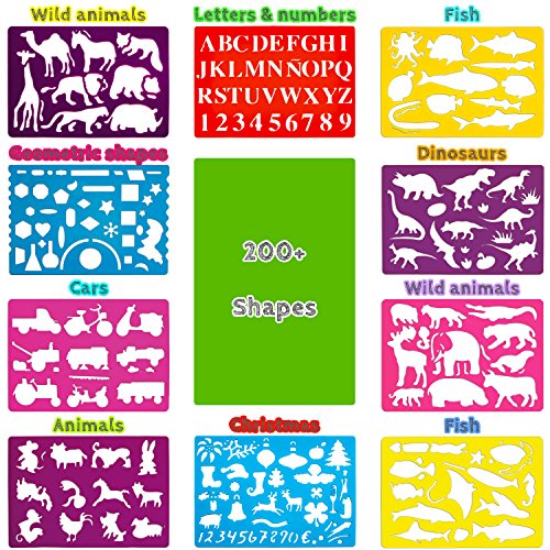 A VARIETY OF MORE THAN 200 SHAPES: This art set includes more than 200 templates such as the alphabet letters, numbers, geometric shapes, flowers, animals, dinosaurs, traditional symbols and more. Our educational toy develop children's learning and drawing skills while having endless hours of fun
