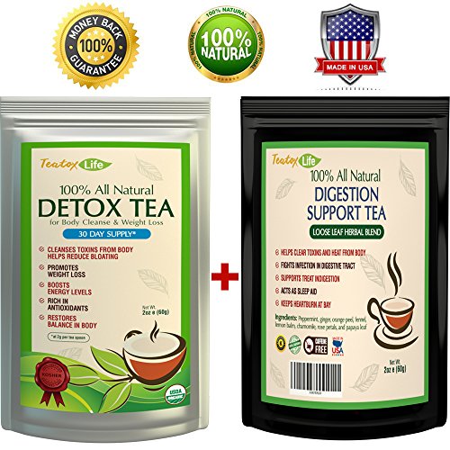 -. Feature : Best herbal Teatox bundle - Each bundle package of teatoxlife contains 2 bags (60 grams each) of organic cleanse and detox skinny mint tea and our all natural herbal digestive enzymes support tea / Cleanse your body - Our herbal slimming tea acts as colon cleanser to reduce bloating and the digestive system supplement tea helps by increasing the body's ability to digest and absorb fats, proteins and carbohydrates / Enhance weightloss - The skinny tea ingredients includes organic herbs and roots like burdock, dandelion root, peppermint, red clover, licorice, yellowdock, ginger and senna leaves that eliminates toxins, increase metabolism and aids digestion for natural and safe weightloss / All Vegan: Our 100% plant based blends provides stomach relief, colon detox to boost digestive health, reduce gas and indigestion, prevent heart burns and reduce bloating / Our delicious and tasty loose leaf tea blends are made with all natural ingredients processed in small batches to maintain freshness. You are protected by our 100% satisfaction guarantee or you have your money back. So why wait? Buy now and achieve your detoxing and cleansing goals