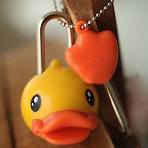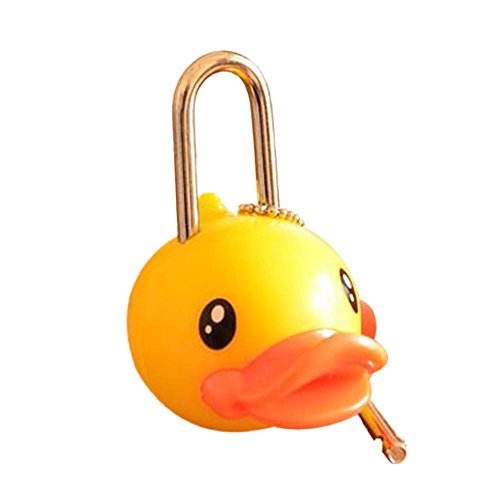 -. Feature : Material: stainless steel + plastic / The duck is about 3.5* 3 cm.The key is about 4.5 cm. / Keep your lage locked and your personal belongings would be safe during travel / Package Included: 1 X lock and key,if you have any question,please contact us for free! / With cute duck/Elephant design,prefect for children room door, locker, lage, suitcase, travel bag, etc.