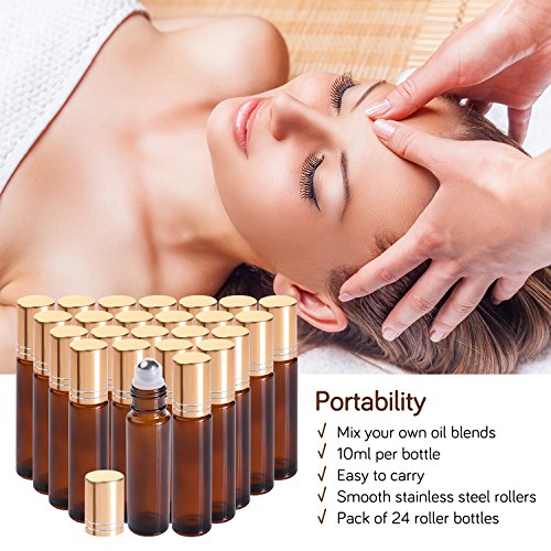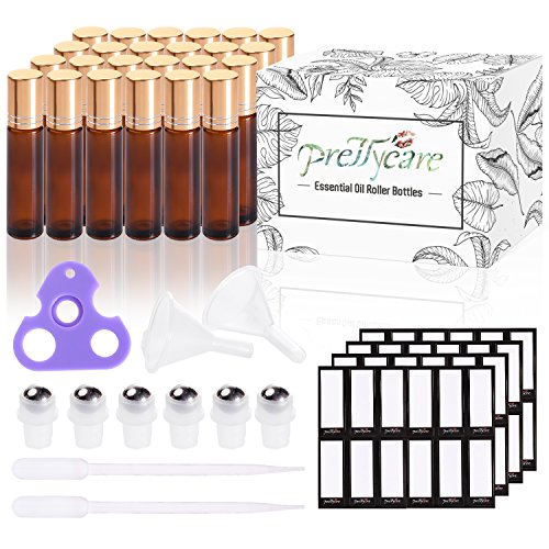 -. Title : Essential Oil Roller Bottles 10ml ( Amber Glass Bottle, 24 pack, 6 Extra Roller Balls£¬48 Labels, 2 Openers, 2 Funnels by PrettyCare ) Roller Balls For Essential Oils, Roll on Bottles