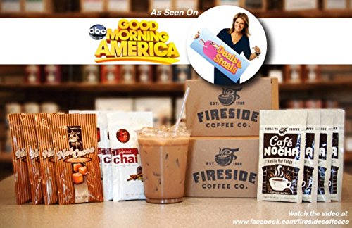 -. Binding : Misc. -. Brand : Fireside Coffee -. EAN : 4872113102256 -. Feature : The packets are great for traveling - take them with you to work or on vacation. / Add the chai mix, to water and ice together in a blender and you'll have a perfectly smooth chai frappe! / Included with this bundle are 4 Spiced Chai 1.2 oz, 4 Chocolate Chai 1.5 oz. & 4 Vanilla Chai 1.2 oz. 12 Packets Total: / Just add water! Each packet makes one 8-10 oz serving. / "As Seen on Good Morning America!" -. IsAdultProduct : 0 -. Label : Fireside Coffee -. Manufacturer : Fireside Coffee -. NumberOfItems : 12 -. PackageQuantity : 12 -. ProductGroup : Grocery -. ProductTypeName : GROCERY -. Publisher : Fireside Coffee -. Studio : Fireside Coffee -. Title : Fireside Coffee's Chai Tea, Spiced/Chocolate/Vanilla 12 Count Bundle
