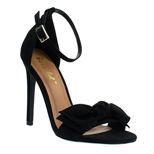 Binding : Apparel Product Description Dance the night away in these seductive high heel dress sandal, these beauties features a thin stiletto heel, single foot strap, oversized bow topping, closed heel counter, adjustable ankle strap and lightly padded sole. About This Shoes :Dance the night away in these seductive high heel dress sandal, these beauties features a thin stiletto heel, single foot strap, oversized bow topping, closed heel counter, adjustable ankle strap and lightly padded sole. Brand - Bonnibel Colors Available: Black and Blush (beige) Occasion: Clubwear Shoe Type: Stilettos Shoe Style: Stilettos Inner Lining: synthetic Heel Height In Inches - 4 Heel Style - Stiletto Toe Style - open-toe Platform Height In Inches - 0.25 Shaft Height In Inches - n/a Circumference Opening - n/a Strap Type - ankle-strap Sole - manmade All Man Made Material unless otherwise stated. Computer/Phone/Table monitors might show color differently because of its quality or calibration, we suggest you look at the photo in at least 3 monitors if you need exact color match of your shoes. 0