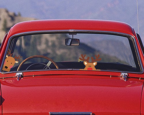 Christmas Decal Vinyl Reindeer Window Decals Car Decal Christmas Decorations Holiday Decor, 4 Count (Reindeer Decals)