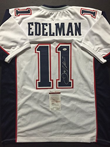 Autographed/Signed Julian Edelman New England Patriots White Football Jersey JSA COA