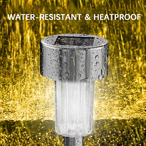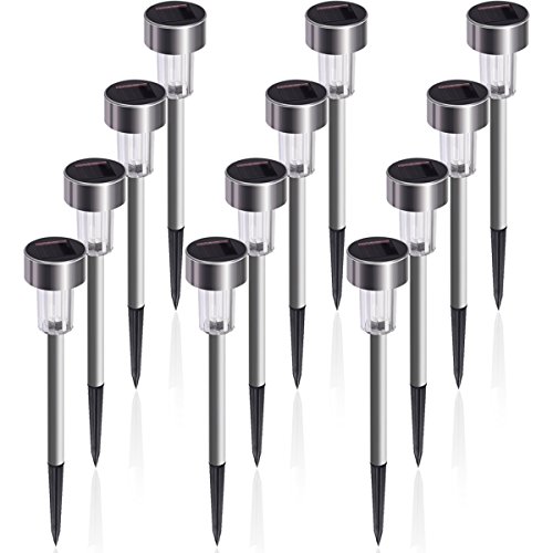 KODOO 12Pack Outdoor Solar Lights, LED Solar Powered Pathway Lights, Stainless Steel Landscape Lighting for Lawn/Patio/Garden/Walkway/Driveway (Warm White)