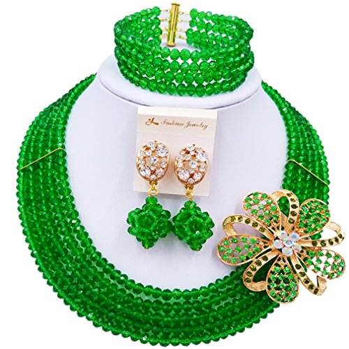 -. Title : laanc 5 Rows fashion jewelry Green African Jewelry Necklace Earrings Bracelet Custom Jewelry sets