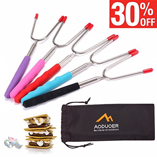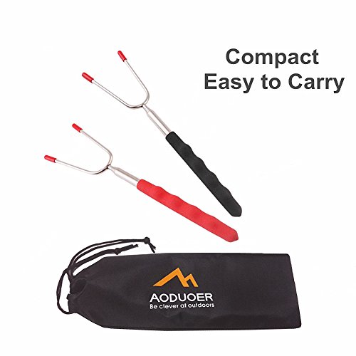 Marshmallow Roasting Sticks - Aoduoer Stainless Steel Telescoping BBQ Hot Dog Fork Smores Skewers with Finger Indents Handle, Safe For Kids, For Camping Campfire, Free Storage Bag