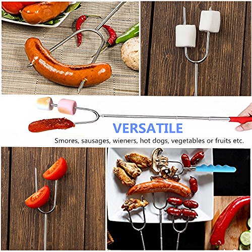 - ★ BEST VALUE SET & PERFECT GIFT. This telescoping Fork Set included 5 marshmallow roasting sticks and a free carrying bag. Ideal for marshmallows, hot dogs, smores, toast, sausages, wieners, etc. With it's fork-like end, it can handle several hot dogs or marshmallows at a time.