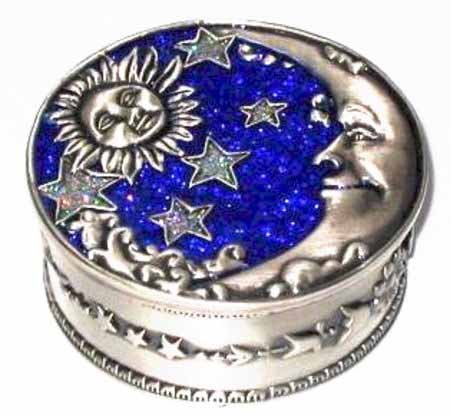 -. Title : Welforth Pewter Moon & Star Jewelry Box (Blue & Yellow)