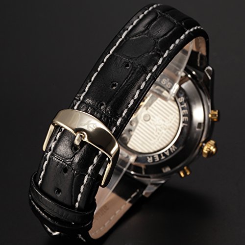 원본상품명: Ks メンズ ラグジュアリ? 6ハンズ 自動機械式 日付月曜日表示 ゴ?ルドケ?ス ブラック レザ?腕時計KS145