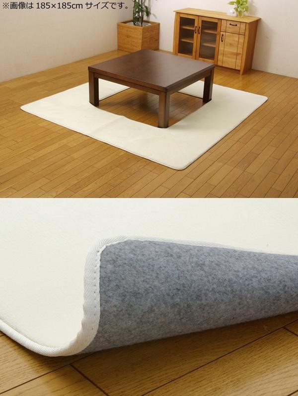 | 掘りごたつ対応のカーペットです。くり抜き部分もお届けします。表地にはフランネルと呼ばれる、しっとりとして非常にやわらかい生地を使用しています。電気カーペットカバーとしても使用できます。 |