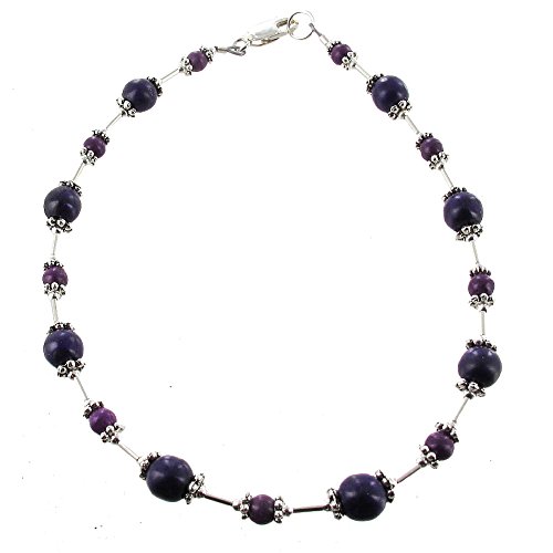 -. Title : Womens Purple Turquoise Magnesite & SS Tube Ladies Beaded Anklet with Daisies