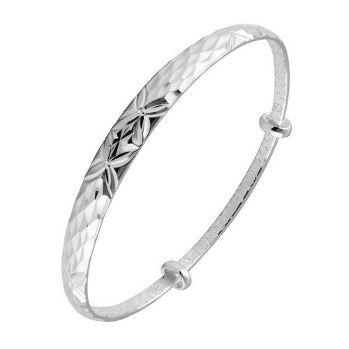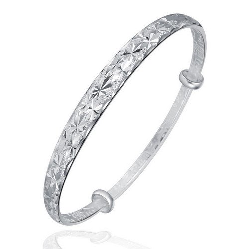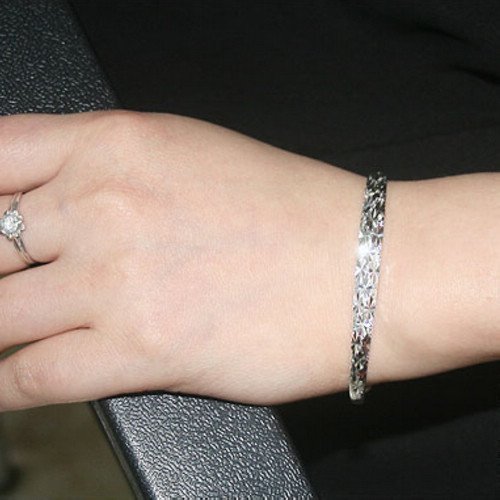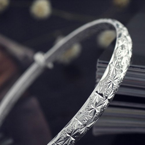 -. Feature : Textured surface Adjustable Bangle Bracelet / Material:Sterling Silver / A free gift box / Min diameter:6cm, Max :7.5cm / Max width: 11cm; Net weight: 11g