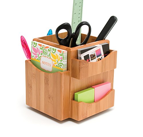 Lipper International 1810 Bamboo Wood Revolving Desk Organizer, 6 3/4" x 6 3/4" x 6 1/4"