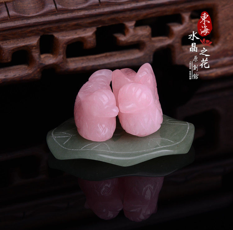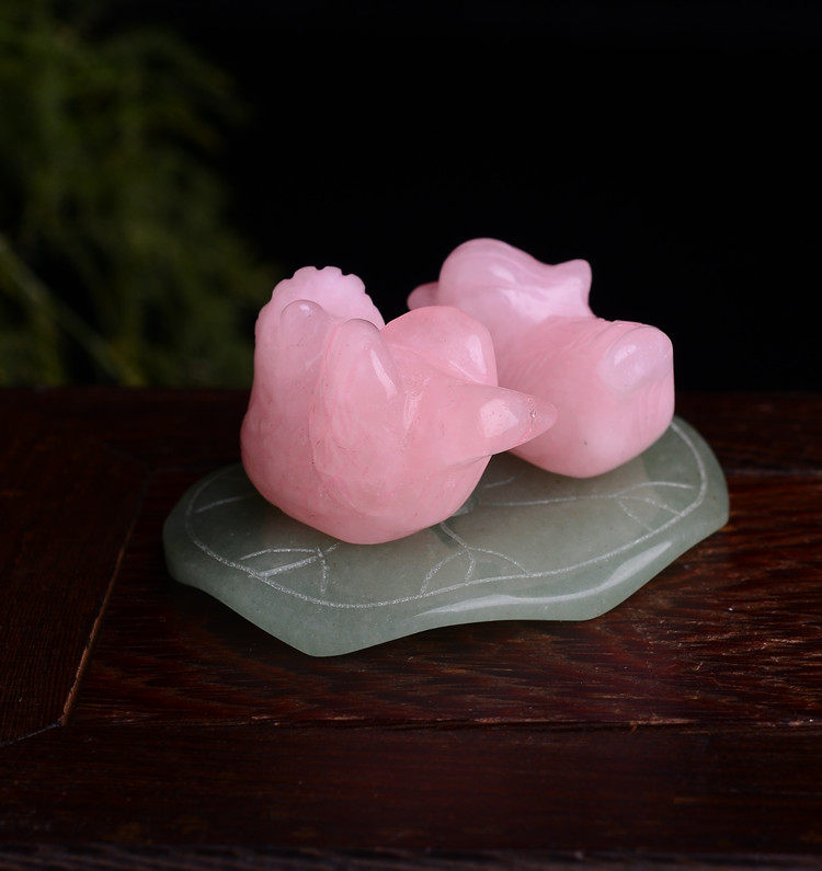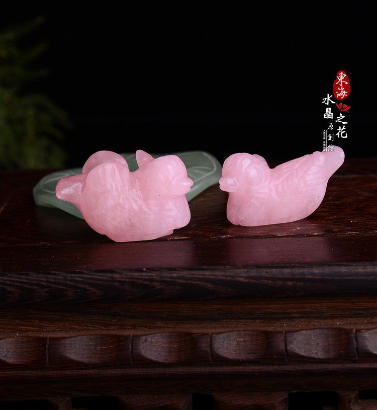 开光天然粉晶鸳鸯摆件旺姻缘助爱情 同心保爱情旺夫妻关系