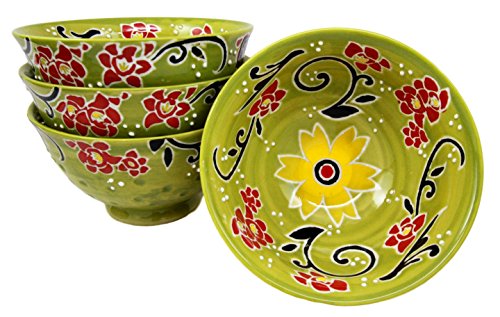 Atlantic Collectibles Set of 4 Luxury Ottoman Style Textured Dining Bowls 5.75"Diameter Made Of Ceramic Ideal For Home Decor Dinnerware & Giftware (Sunflower Green)