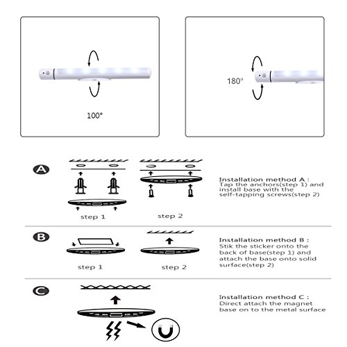 USER-FRIENDLY ANGLE : Smart motion sensor and light sensor, three modes(ON/OFF/AUTO). In particular, it has a 180°rotable sensor and 100°rotable light body. You can freely adjust the lights to select the most comfortable angle.