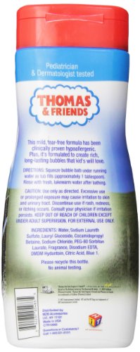 -. Binding : Health and Beauty -. Brand : Thomas & Friends -. EAN : 0692237054835 -. Feature : 24 fluid ounces / Tear-free / Provides rich long lasting bubbles / Use with our other bath and shower products for the ultimate bathing experience / No animal testing -. IsAdultProduct : 0 -. Label : Thomas the Train -. Manufacturer : Thomas the Train -. Model : CTR10000 -. MPN : CTR10000 -. NumberOfItems : 1 -. PackageQuantity : 1 -. PartNumber : CTR10000 -. ProductGroup : Health and Beauty -. ProductTypeName : HEALTH_PERSONAL_CARE -. PublicationDate : 2014-02-07 -. Publisher : Thomas the Train -. ReleaseDate : 2014-02-04 -. Studio : Thomas the Train -. Title : Thomas The Train Bubble Bath, 24 Ounce -. UPC : 692237054835