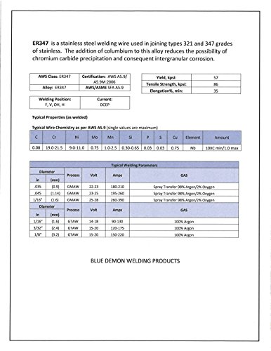 Blue Demon ER347 x 1/16" x 36" x 10LB Box Stainless Steel Tig Welding Rod