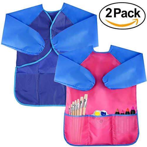 Good quality - our art smock is made of smooth, waterproof polyester material, bpa free, safe and non-toxic.It's reused,durable and easy to clean with soap and water by machine.