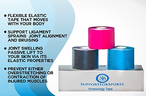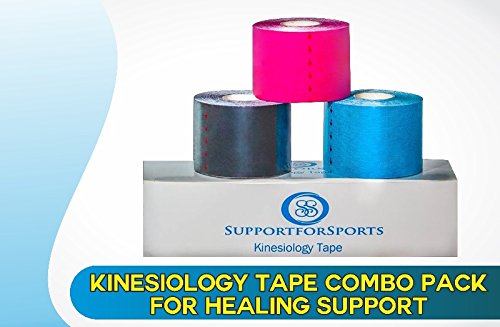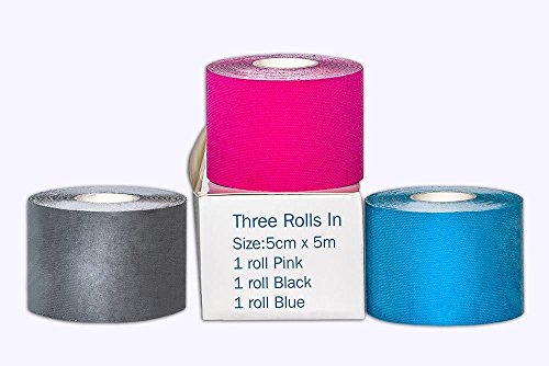 Support for Sports Kinesiology Tape 2" x 16.4', 5m x 5cm Combo Pack of 3 Provides Support During Healing Therapeutic Muscle Relief (Blue, Pink, Black)